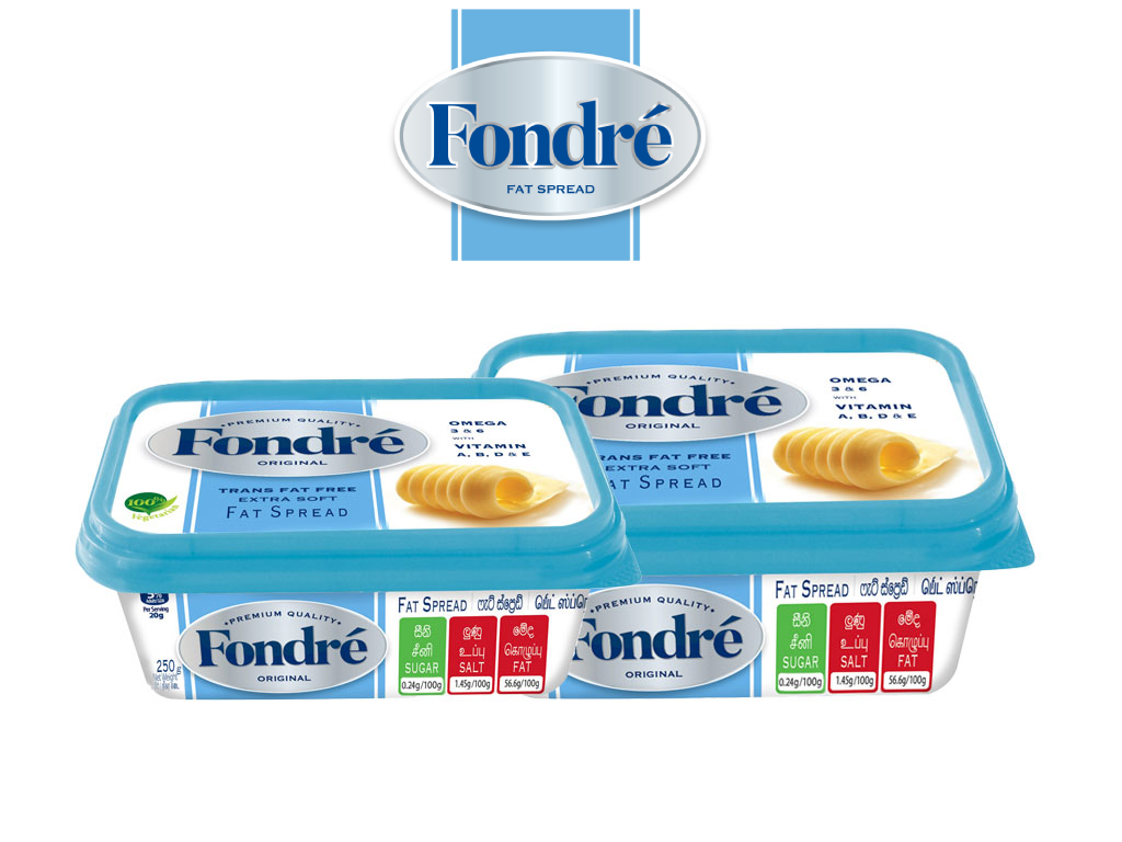 Fondré is an exquisite Premium Fat Spread formulated with the highest quality Canola Oil & Sunflower Oil. It is rich in Omega 3 & 6 and Vitamins A, B, D & E to give a soft, and smooth spreading experience for the discerning consumer.
